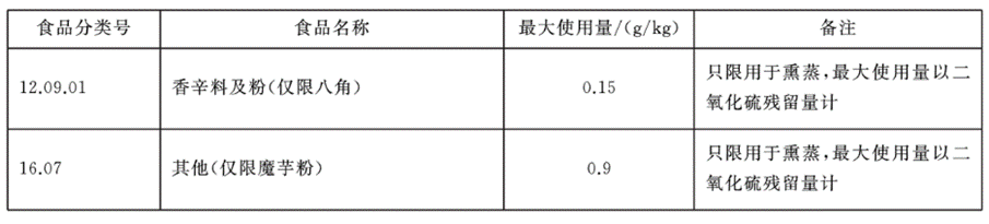 GB/T 19742《地理标志产品 宁夏枸杞》中规定:枸杞中二氧化硫含量≤50mg/Kg。 【其它参考标准】 详见GB2760 食品添加剂使用卫生标准。