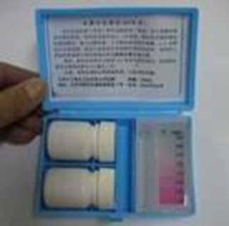 4.4余氯与总氯速测盒基本配置:比色皿、比色片、观测用镂空板各1个,余氯药片、碘化钾试剂各1瓶(100次测定用量),药勺1个。 5.储藏:试剂于阴凉干燥处保存,有效期24个月。生产日期见包装。